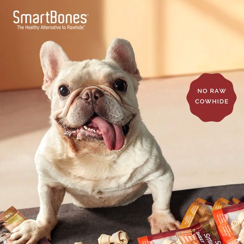 SmartBones深知无论多么挑嘴的狗狗,都无法拒绝美味的肉,我们创新性地将美味的肉藏入洁牙层,一根符合自然法则的洁齿骨就此诞生。