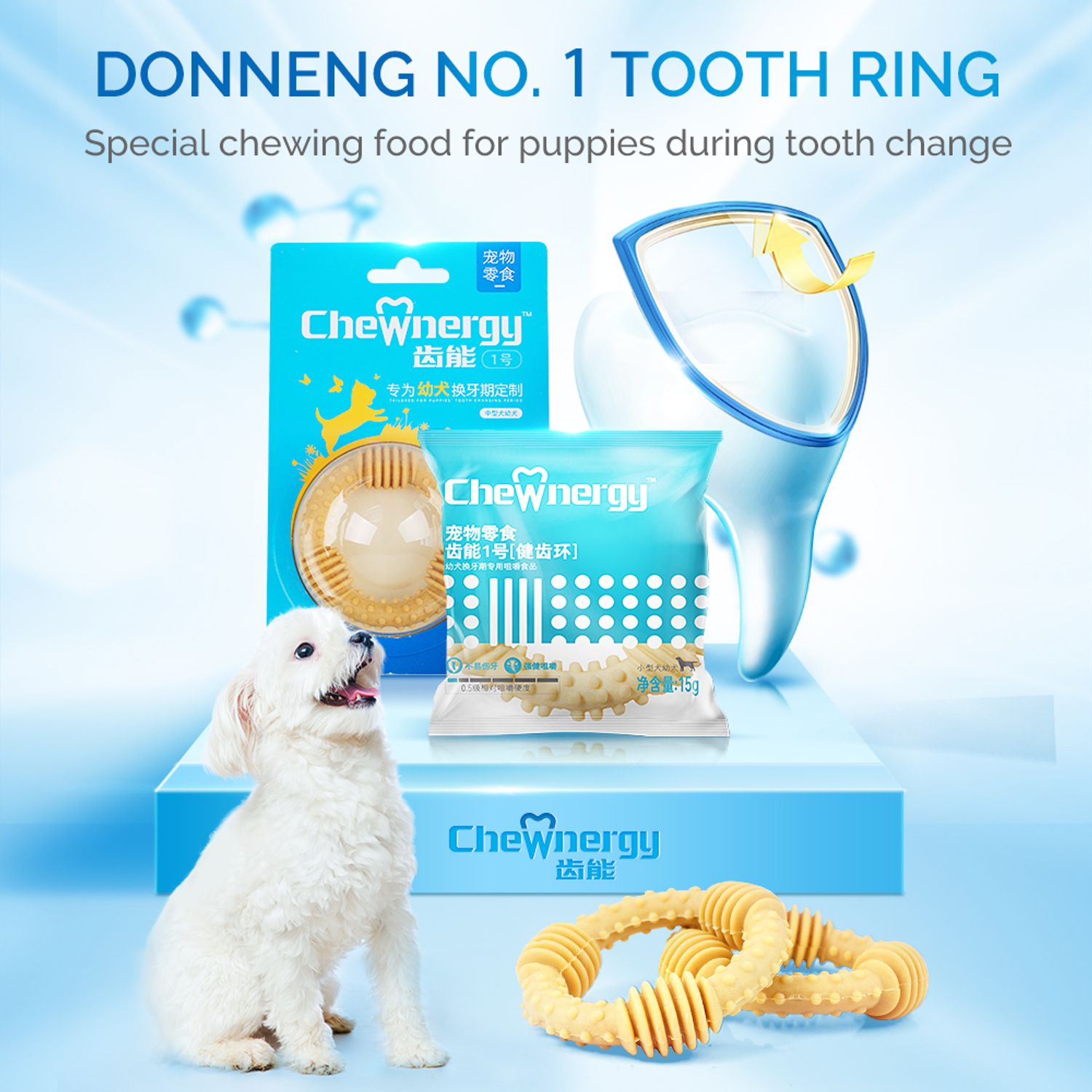 齿能宠物零食为您的宠物提供美味又营养的零食,促进牙齿和牙龈健康。这些零食经过特殊配制,可满足宠物的咀嚼本能,同时提供必需的营养。有了 ChewNergy 宠物零食,您可以为您的宠物提供令人满意且安全的咀嚼体验,让它们保持快乐和健康。